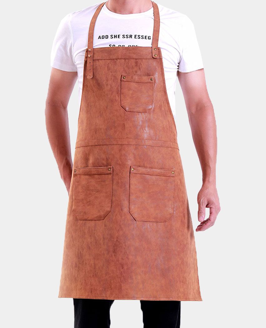 Brown Leather Kitchen Apron With Pockets